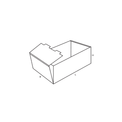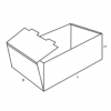 Коробка складная представлена в модификации лотка. Такая конструкция применяется для складирования и реализации овощей и фруктов, кондитерских изделий и других товаров, которые размещаются на торговых прилавках. Модель изготавливается из гофрокартонной заготовки, вырезанной по стандартному шаблону. Торцевые края загибают внутрь с продеванием язычков в специальные щели и образуя двойные стенки. Верхняя часть является открытой, поскольку в конструкции не предусмотрена крышка.